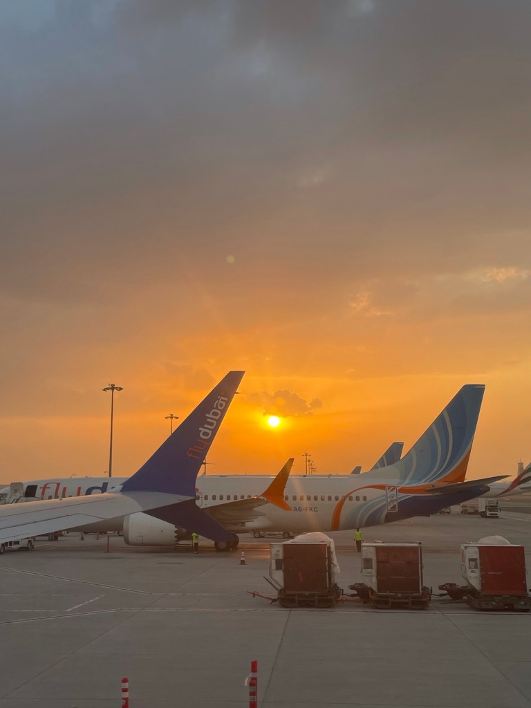 Mit FlyDubai – erneut eine neue Airline für uns – flogen wir via Dubai direkt nach Basel. Beide Flüge waren nahezu leer, und wir hatten jeweils eine ganze Sitzreihe für uns, was für unsere Erholung und unseren Schlaf sehr angenehm war.