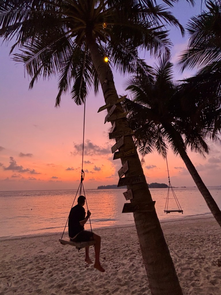 Unsere Unterkunft lag zwar nicht direkt am Strand, verfügte jedoch über Liegen am sogenannten Bikini-Strand (dazu später mehr), die wir kostenlos nutzen konnten. Dort verbrachten wir auch die meiste Zeit, solange das Wetter mitspielte. Leider wurden wir auch auf dieser letzten Insel noch regelmässig von Regen begleitet und mussten immer wieder in ein Restaurant oder in unser Zimmer ausweichen. Da wir abgesehen vom Tauchen keine weiteren Ausflüge geplant hatten, war das für uns jedoch nicht weiter tragisch.